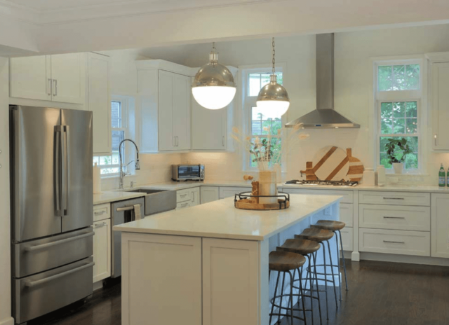 The materials that make up your island should reflect your cooking habits. Many of our clients choose quartz instead of granite. And if you’re looking for unusual colors and dramatic designs – consider marble. Recently, butcher block is becoming popular again. It’s also common for homeowners to add a chopping board section to their kitchen islands.
